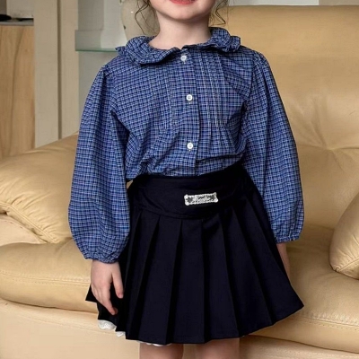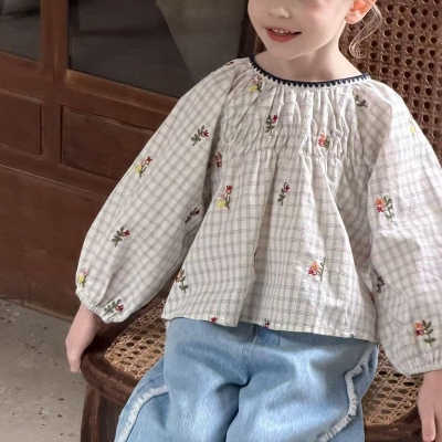 - 아이아이.봄)블루밍체크블라우스