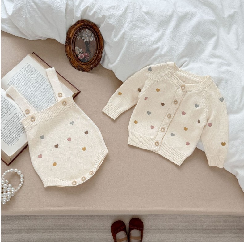 - [수입]하트자수가디건셋