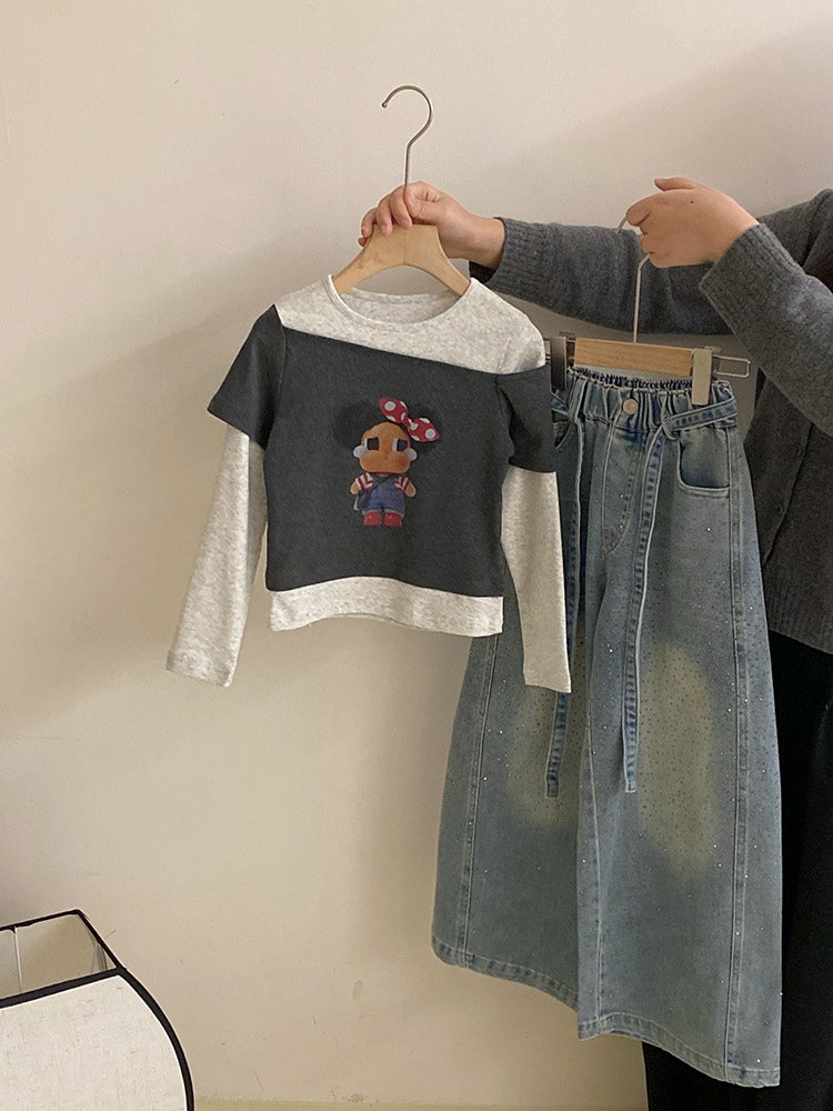 - [수입]레이스민소매+데님스컷