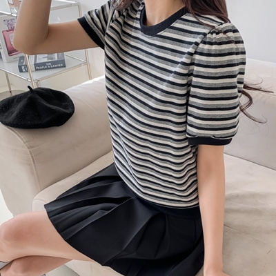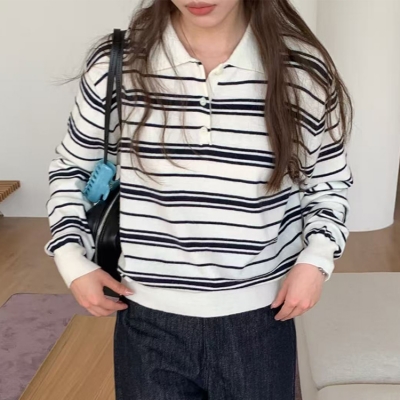 - on.[NT718]스트라이프카라넥버튼니트