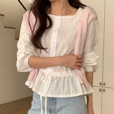 - on.[BL668]시스루스트링캉캉블라우스