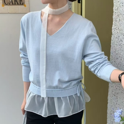 - on.[NT719]쉬폰머플러프릴레이어드니트