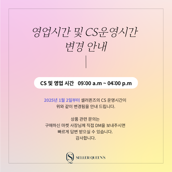 25년도 영업시간 변경 안내