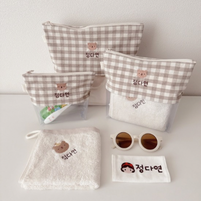 - [국내] 투명 베이지체크 방수파우치