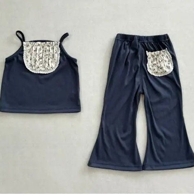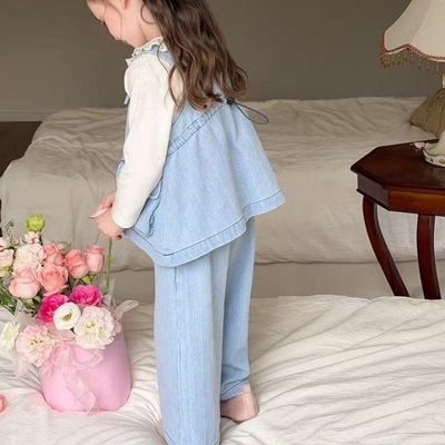 - 아이아이.봄)와이드프릴데님상하세트