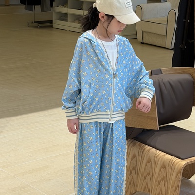 - 비다이어리.블루플라워후드집업상하세트