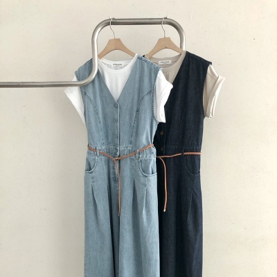 ca.벨트V데님점프슈트